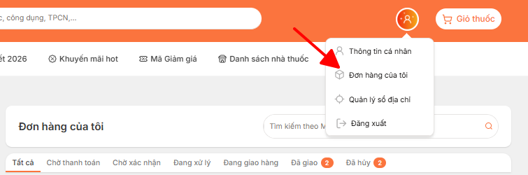 Bước 1: Sau khi đăng nhập, vào ĐƠN HÀNG CỦA TÔI