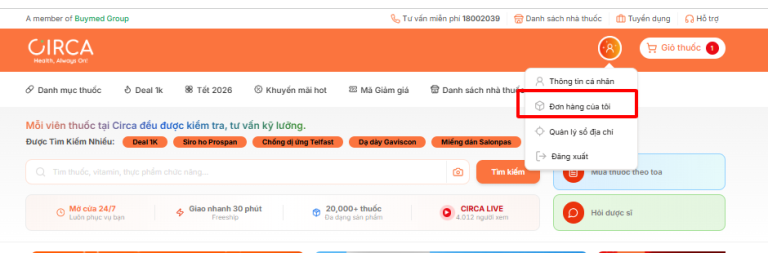 Trường hợp Trạng thái đơn hàng Đang xử lý, Đang giao hàng: Khách hàng vui lòng liên hệ CSKH hotline 1800 2039 để được hỗ trợ , cung cấp số điện thoại đặt hàng hoặc mã đơn hàng
