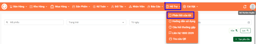 Bước 1: Vào phần POS -> chọn ” Hỗ trợ ” -> Chọn ” Phản hồi của tôi “