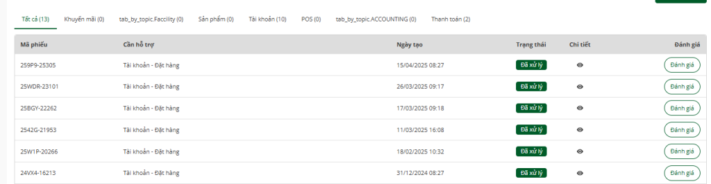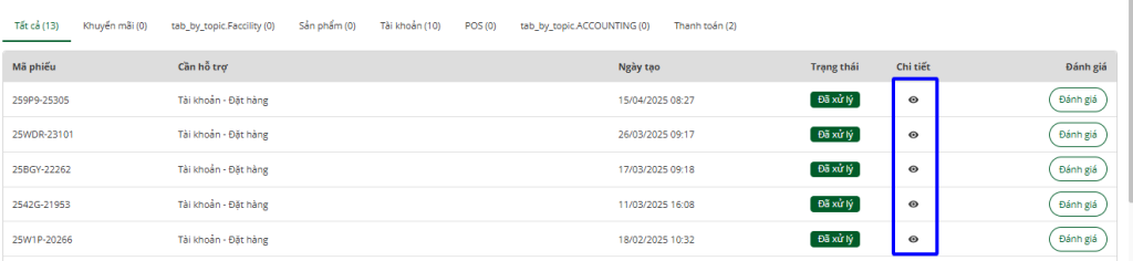 Bước 2: Kiểm tra các phiếu hỗ trợ đã tạo
