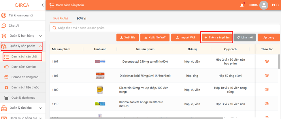(1) Mã sản phẩm: ID sản phẩm tương ứng trên hệ thống của Circa