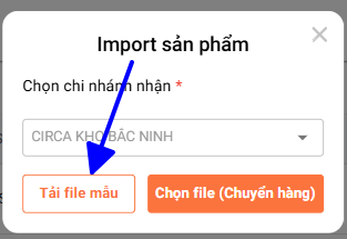 Sau đó ấn Tải File mẫu, điền thông tin theo mẫu
