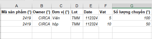 – Trường hợp điền file thành công -> phiếu chuyển trạng thái ” Đang soạn hàng “: Tự động pick tồn tương ứng với LOT-DATE-VAT và số lượng import