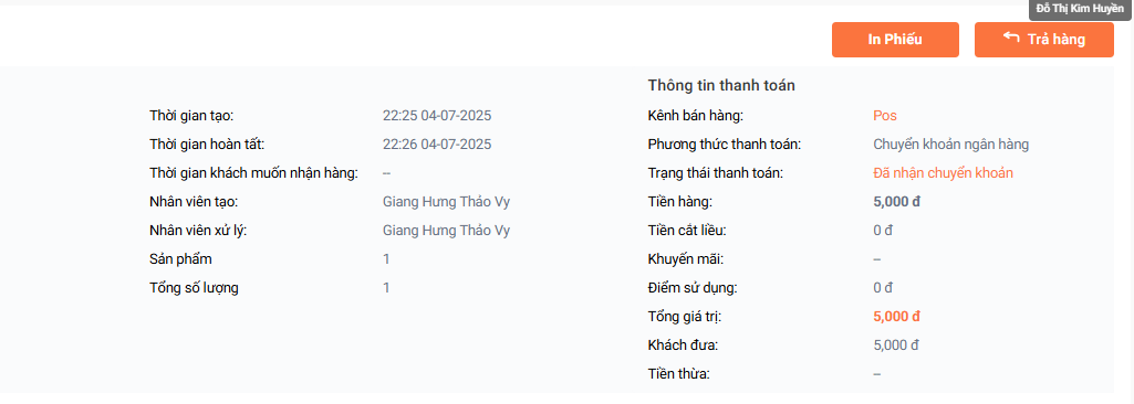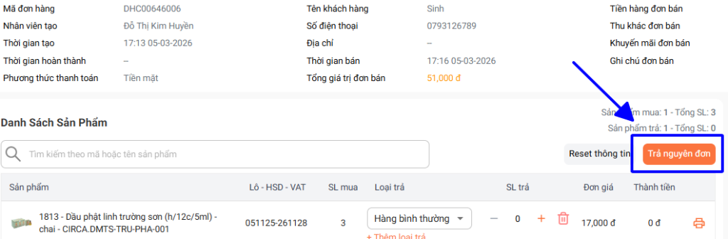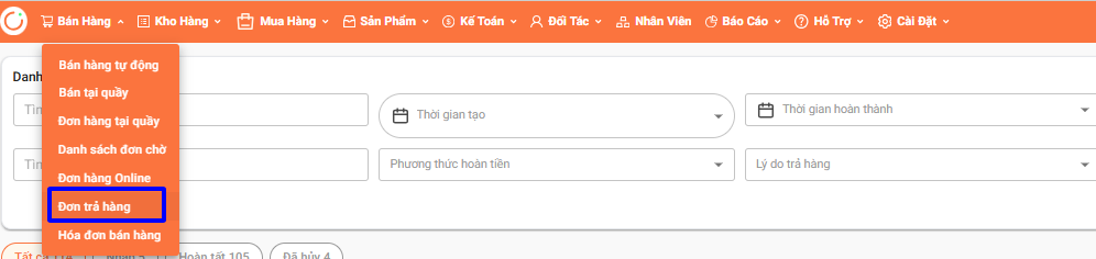 Hướng dẫn thao tác Trả hàng bán