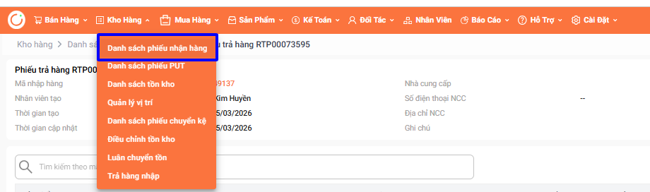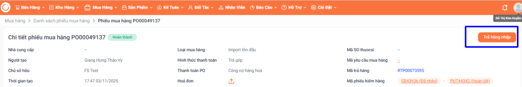 Hướng dẫn thao tác Trả hàng nhập